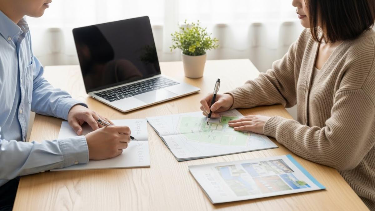 マイホームの土地探しは、「何から始めるか」と「プロとどう進めるか」を押さえれば、知識ゼロからでも失敗を大きく減らせます。 結論として、総予算と暮らし方を整理し、中立的な建築のプロと一緒に土地を見極めることが、最短で後悔のないマイホーム計画につながります。 マイホームの土地探しは「土地から探す」のではなく、「総予算と理想の暮らしから逆算して選ぶ」のが失敗しないコツです。 土地探しの結論は、「まず土地を探す」のではなく「暮らし方の整理と総予算の把握」が第一歩だということです。 理由は、先に土地だけを決めてしまうと「思った家が建たない」「資金が足りない」といった後悔が起こりやすいためです。 具体的には、家族の理想の暮らしを言語化し、無理なく返せる住宅ローンから逆算して総予算を決め、その枠内で土地と建物のバランスを考える流れが安全です。 結論として、初心者が意識すべき順番は「暮らしの整理→総予算→相談先→土地探し→住宅会社選び」です。 理由は、暮らしとお金という土台が固まる前に土地を契約すると、建物の広さや仕様を大きく妥協せざるを得ないケースが多いからです。 例えば、年収や教育費・老後資金まで含めたライフプランから適正予算を診断し、その枠の中でエリアや土地条件を一緒に整理することで、「買った後に冷や汗をかく土地選び」を防げます。 一言で言うと、総予算は「金融機関が貸してくれる最大額」ではなく「将来の家計を圧迫しない返済額」から決めるべきです。 理由として、固定資産税・火災保険・メンテナンス費用など、住宅ローン以外のコストが必ず発生し、教育費や介護費と重なると家計に大きな負担がかかるためです。 実務では、現在の収入・支出・貯蓄に加え、子どもの教育プランや老後資金まで踏まえて適正な借入額を診断し、「土地・建物・諸費用」を含めた総額の上限を決めることが重要です。 結論として、日進市・名古屋市名東区での土地探しでは「坂・道路幅・高低差・将来の開発計画」への目配りが欠かせません。 理由は、坂が多い・道路が細いといったエリア特性が、駐車計画や工事費、将来の暮らしやすさに直結するからです。 当社のように地価やインフラ状況を日常的に把握している中立窓口に相談いただくことで、「価格だけでは分からない地元ならではの注意点」まで含めた判断が可能になります。 結論として、土地探しのコツは「条件整理」「エリアの柔軟性」「プロ同行チェック」の3つに集約されます。 理由は、感覚ではなく明確な基準と建築のプロの視点を取り入れることで、「お得に見えて実は高くつく土地」を避けられるからです。 具体的には、通勤時間や学区などの優先順位を家族で決め、エリアや条件を少し広げながら、気になる土地は必ず建築のプロと一緒に現地確認する進め方が有効です。 一言で言うと、「絶対に譲れない条件」と「状況次第で変えられる条件」を切り分けることが、迷わない土地探しの第一歩です。 理由は、全てを100点満点で満たす土地はほぼ存在せず、優先度をつけないまま探すと、情報に振り回されて決めきれなくなるためです。 通勤時間・学区・駅距離・日当たり・駐車台数などをリスト化し、「A(必須)・B(できれば)・C(妥協可)」に分けると、ポータルサイトや不動産会社からの提案を冷静に比較しやすくなります。 結論として、「駅徒歩10分以内」など条件を固定し過ぎず、「通勤時間30分圏」「バス利用も許容」など柔軟な軸で考えると、同じ予算でより良い土地に出会える可能性が高まります。 理由は、検索条件を厳しくしすぎるとそもそも候補が出てこず、価格が高く条件の悪い土地に無理をしてしまうリスクがあるからです。 実際に、少し駅から離れた整形地を選ぶことで、間取りの自由度が高まり、駐車スペースと日当たりが両立できた30代共働き世帯の事例もあります。 最も大事なのは、「気になる土地が出たら、必ず建築のプロと一緒に現地を歩く」という一手間です。 理由は、地盤・上下水道・ガス・電柱・境界・高低差など、図面や写真だけでは分からない要素が建築コストと暮らし心地に直結するためです。 当社では、日当たりや風の抜け、将来の増築可能性まで含めてチェックし、「見た目はきれいだが追加工事が高額になる土地」を事前に見抜けるようサポートしています。 結論として、同じ「良さそうな土地」でも、家族構成や働き方によってベストな選択は変わるため、事例ベースで考えることが役立ちます。 理由は、通勤重視か学区重視か、相続土地を活かすかなど、暮らし方により優先順位がまったく異なるからです。 当社では、30代共働き世帯・子育て世帯・相続土地活用など、さまざまなケースで土地からマイホーム完成まで伴走してきました。 一言で言うと、「駅近の細長い土地」より「少し遠いが整形地」の方が、結果として満足度が高くなったケースです。 駅徒歩10分の細長い土地