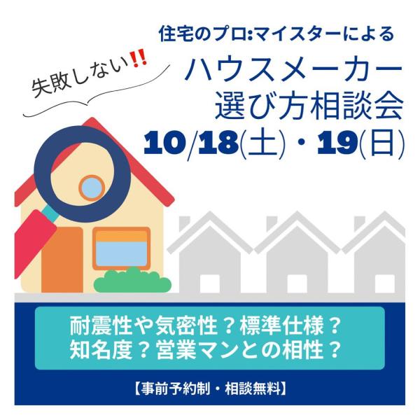 10月18日(土)19日(日)失敗しないハウスメーカー選び方セミナー開催